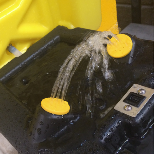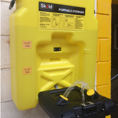 Dispositivo de seguridad que forma parte del equipamiento de una empresa con el fin que sea destinado a proteger los ojos de una persona tras un accidente en el que hayan podido penetrar materiales contaminados o sustancias extrañas.