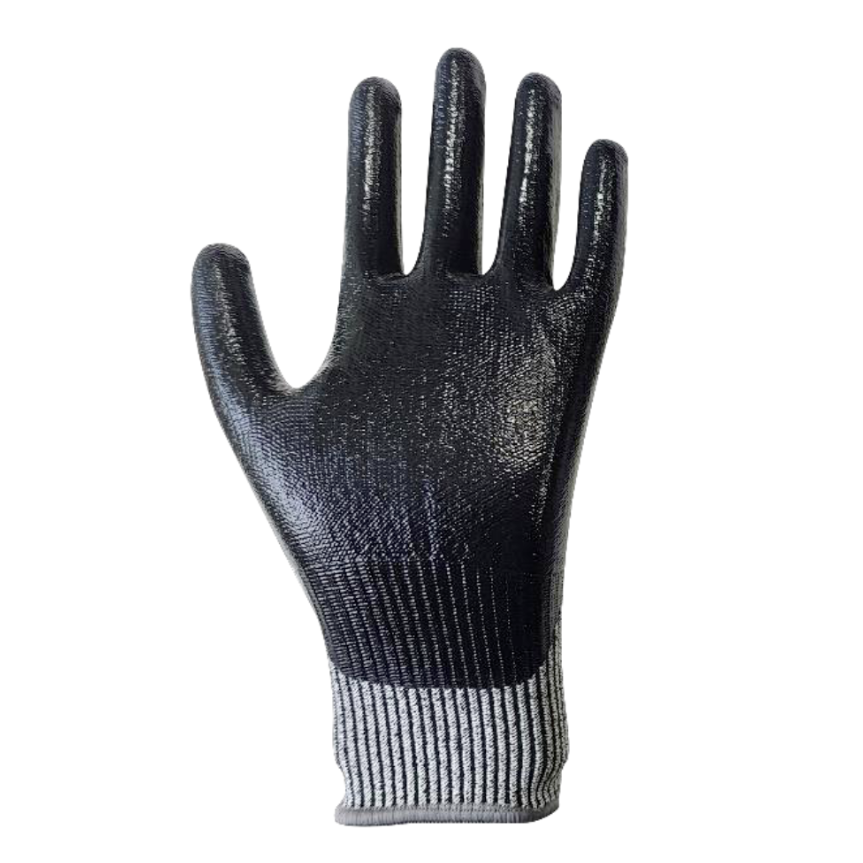 Guante anticorte nivel 5 recubierto de nitrilo en palma, excelente agarre en seco y en presencia de aceites.