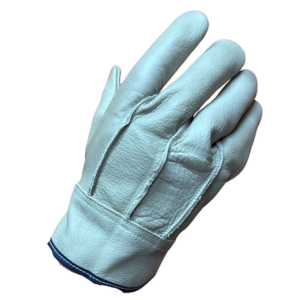 Guante argonero fabricado en piel de res pigmentada con refuerzo en la palma.