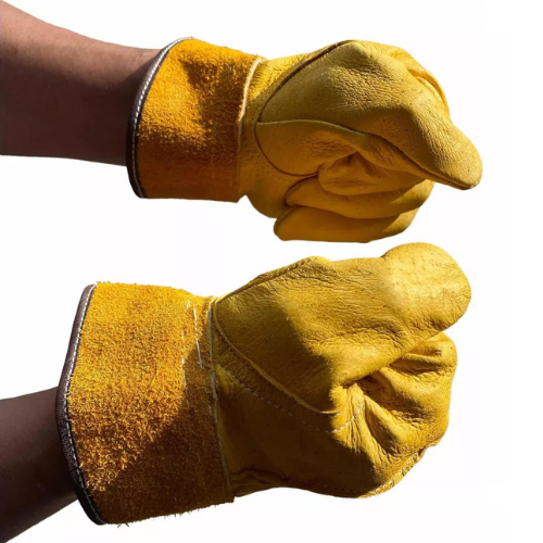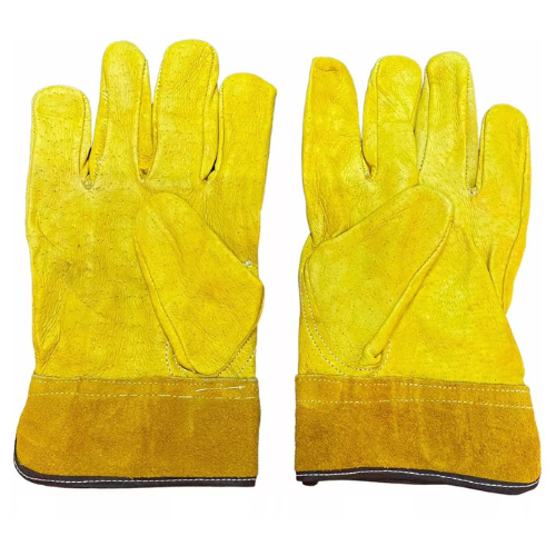 Guante fabricado dorso y palma en piel de ganado vacuno, reforzado en palma y dedo índice, con puño de carnaza.