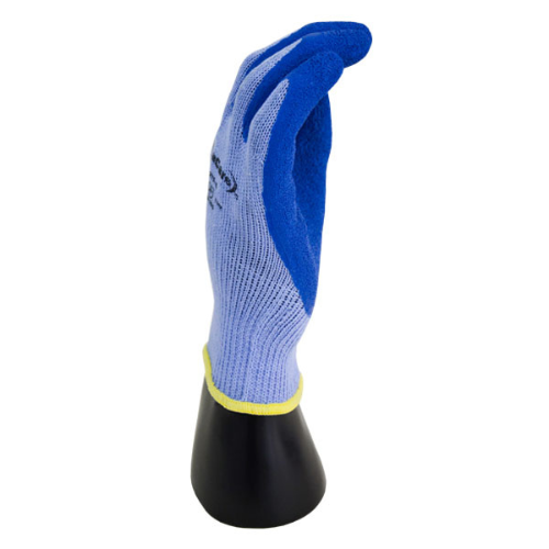 Guante de tejido de algodón con poliéster gris con recubrimiento de látex azul en dedos y palma con acabado rugoso. Gran maniobrabilidad en trabajos mecánicos que requieran alta destreza y precisión.