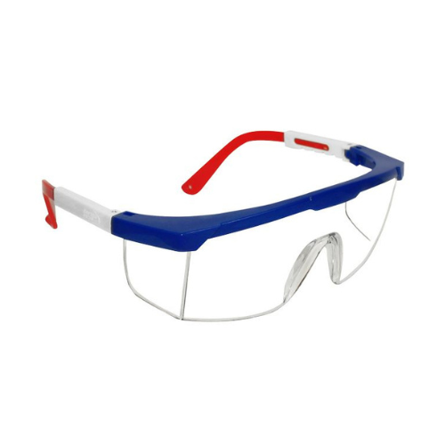 Lente de policarbonato y armazón tricolor, soporte nasal, filtro UV, tratamiento antirayaduras, sistema retráctil.
